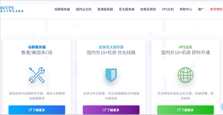 80VPS是南宁悠米网络科技有限公司旗下自2011年运营的老牌国人主机商,长期面向中文用户提供VPS、独立服务器和虚拟主机租用服务。其核心优势在于拥有广泛的海外节点,机房覆盖中国香港、韩国、日本、美国及欧洲多地,并主打CN2 GIA等优化线路以保障中国大陆用户的连接速度。产品采用KVM/XEN虚拟化架构,支持Windows与Linux系统,配备如SolusVM等中文管理面板,且提供7×24小时工单技术支持。作为典型的国人商家,它支持支付宝、微信等本土化支付方式,定价偏向中低端性价比路线,适合用于外贸建站、SEO站群及个人开发等项目,但需注意其部分低价套餐在流量高峰时段可能面临网络波动的潜在情况。
